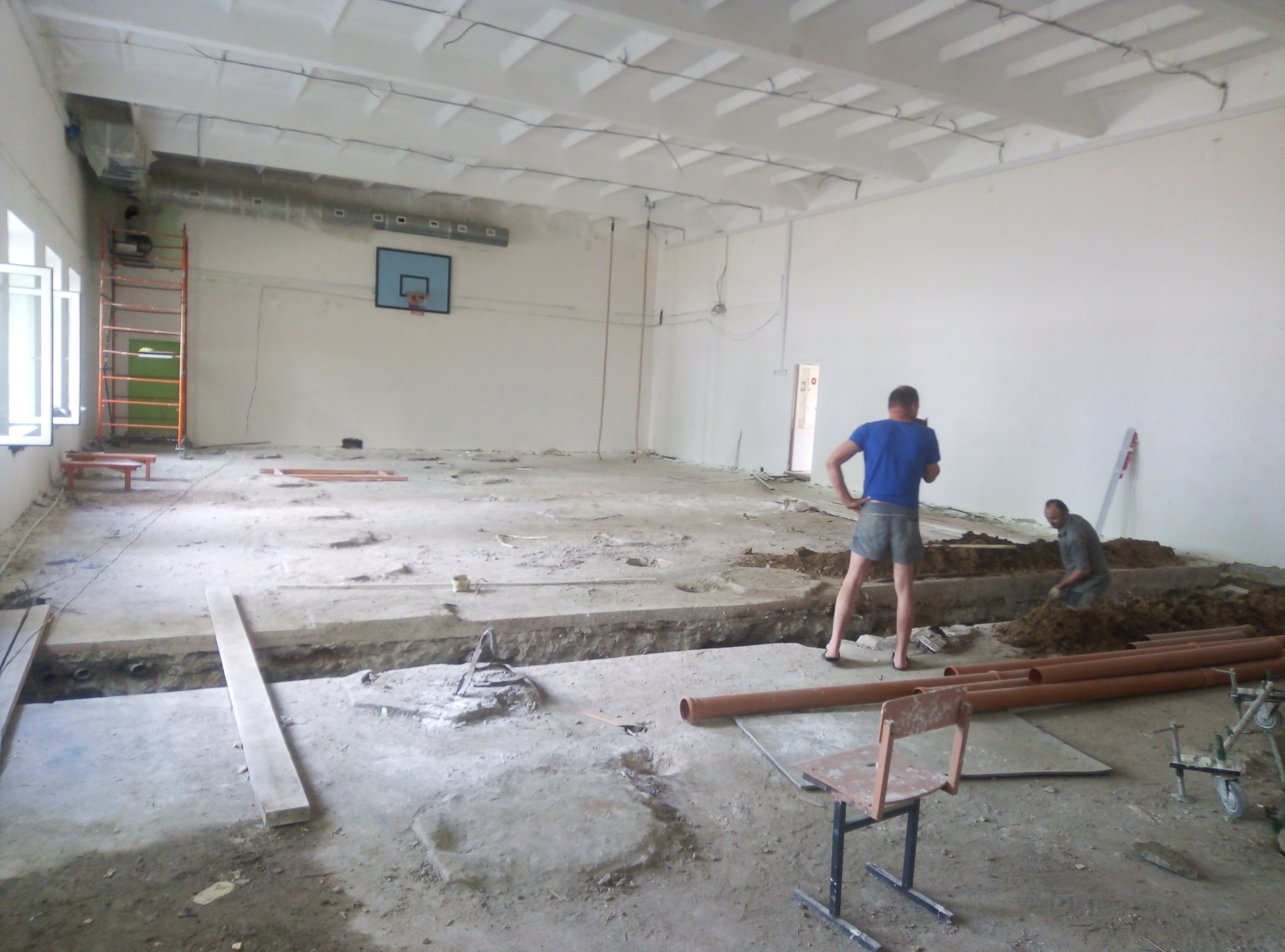 По состоянию на 22 июля подрядчик выполнил порядка половины всех запланированных работ. Установлены пластиковые окна, завершается обновление кровли, меняется сантехника, системы центрального отопления, водоотведения, электроснабжения, вентиляции. Ведутся штукатурно-малярные работы, ремонт душевых, раздевалок и административных помещений.