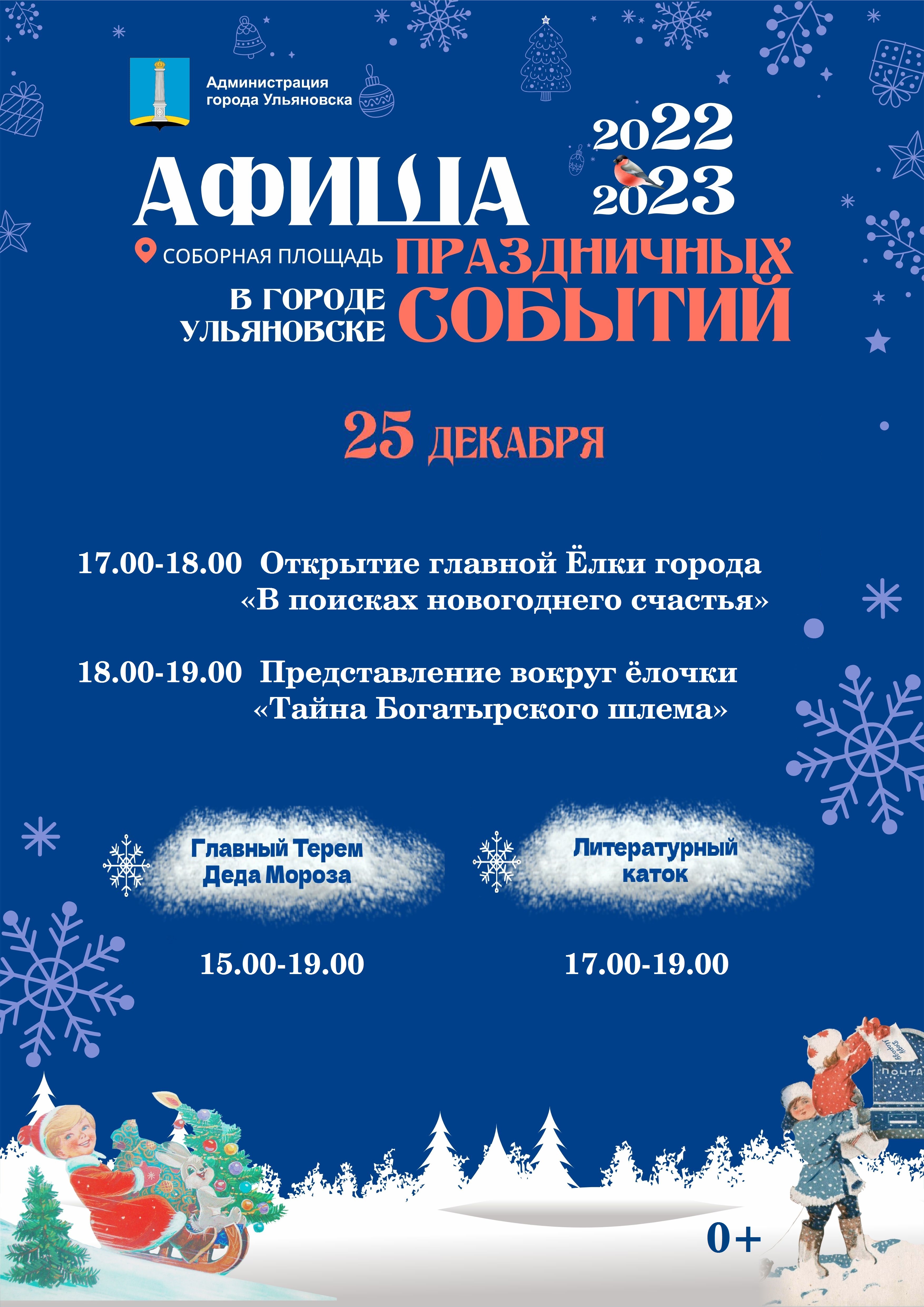 Кроме того, с 25 по 30 декабря и 7 января на Соборной площади будет работать «Литературный каток». Здесь горожане смогут проявить свои способности в чтении стихов и получить подарки.