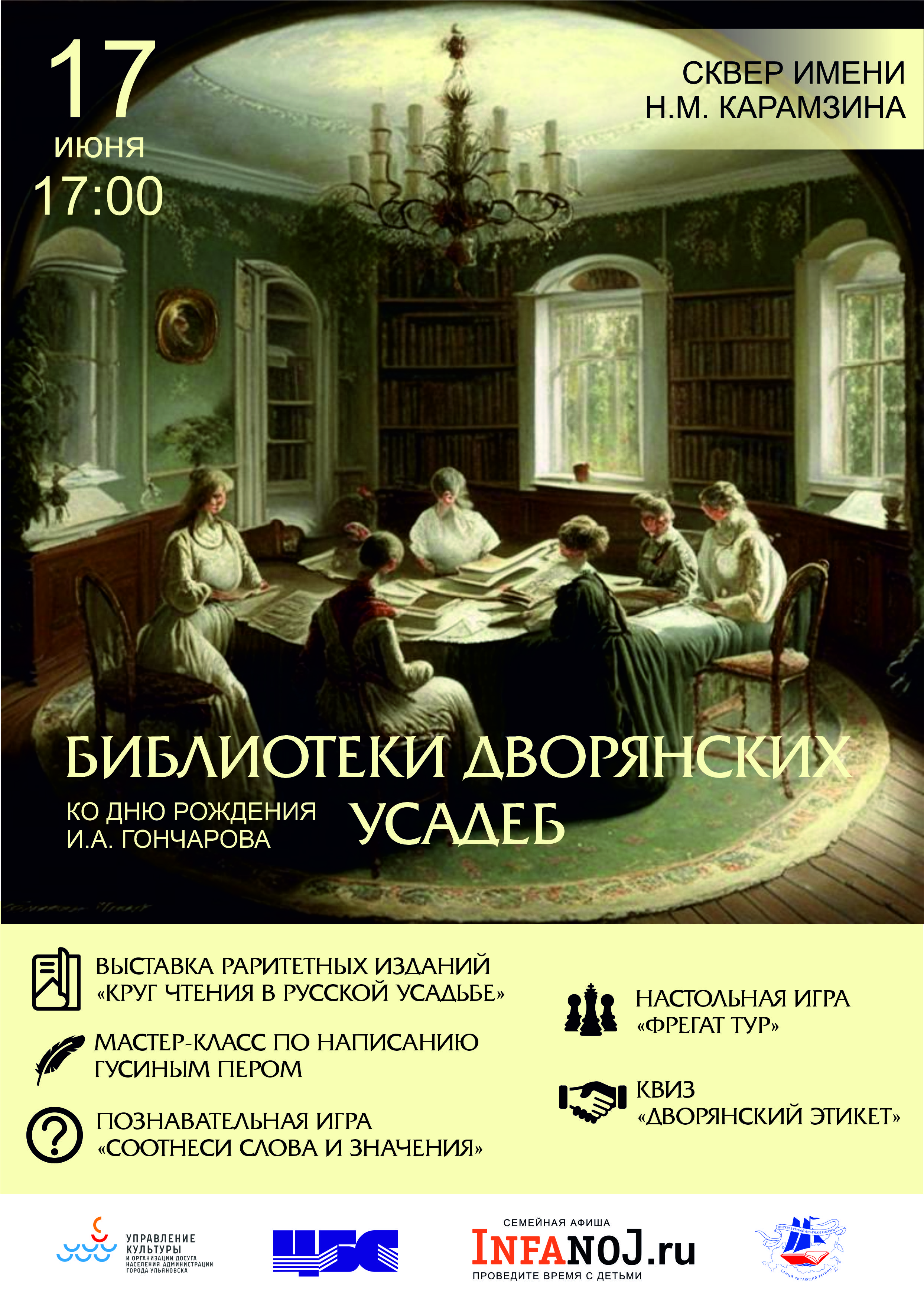 В КЦ «Аврора» (ул. Жуковского, 45) в13:00 начнётся «Гончаровская беседка» - литературная встреча, посвященная 211-летию со дня рождения И.А. Гончарова