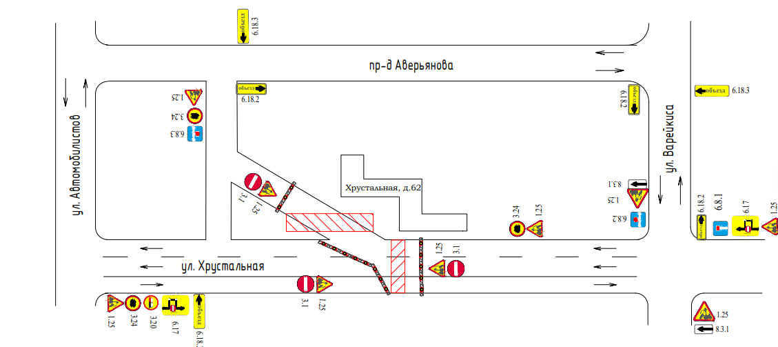 С 22:00 22 июня до 5:00 23 июня, а также 24 июня с 9:00 до 16:00 для движения транспорта будет закрыт участок автомобильной дороги у дома №62 по улице Хрустальной.