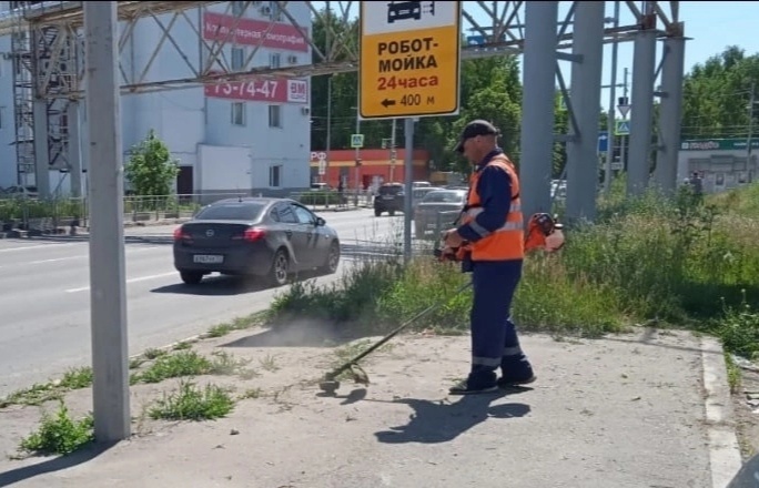Сегодня, 28 июня, МБУ «Дорремстрой» организовало покос травы на проспекте Нариманова, Сельдинском и Поливенском шоссе, а также в посёлках Белый Ключ и Плодовый.