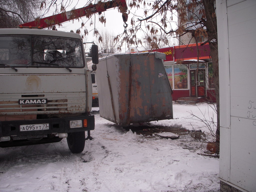 Сегодня, 17 декабря, бригада МУП «Городская теплосеть» и сотрудники управления муниципальной безопасности демонтировали и вывезли на производственную базу нестационарный торговый объект, самовольно размещённый возле дома №56 по улице Автозаводской.